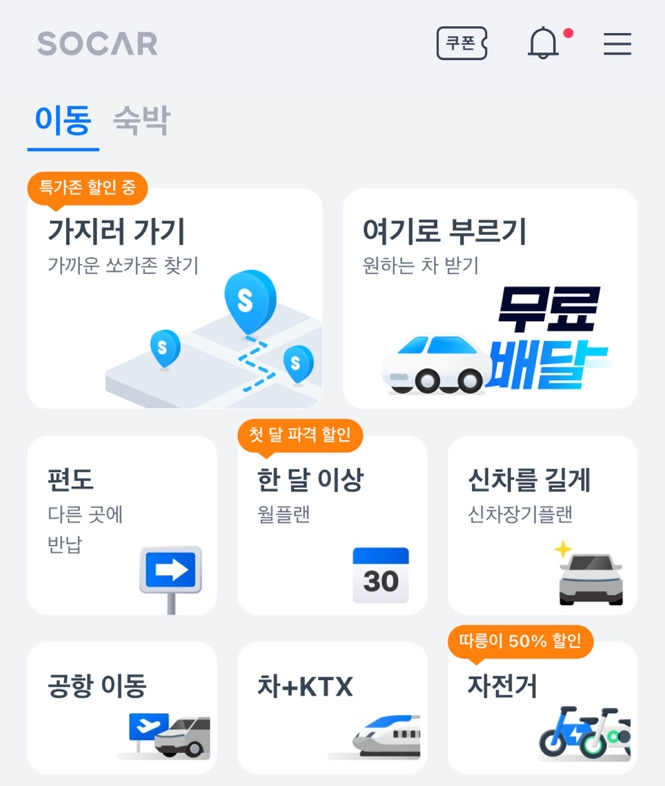 그래서 쏘카 앱을 자주 접속하는 경우가 있는데 최근에 따릉이도 쏘카 앱에서 대여가 가능하다고 해서 찾아봤어요.